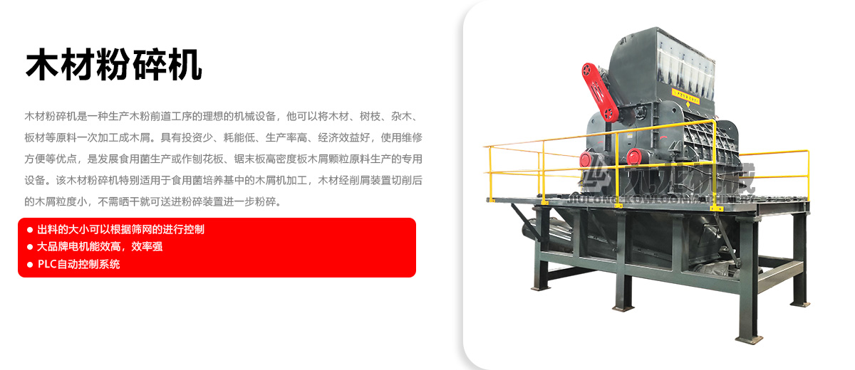木材粉碎機是生產木粉前道工序的理想機械設備。它可以將木材、樹枝、雜木、板材等原料一次加工成木屑,具有投資少、耗能低、生產率高、經濟效益好,使用維修方便等優點,是發展食用菌生產或作刨花板、鋸末板高密度板木屑顆粒原料生產的專用設備。木材經削屑裝置切削后的木屑粒度小,不需曬干就可送進粉碎裝置進行下一步的粉碎。